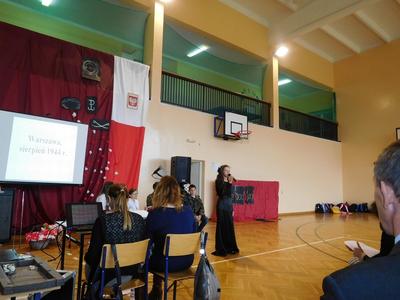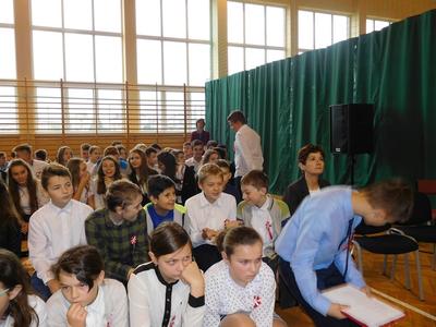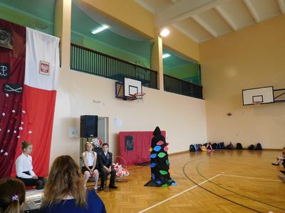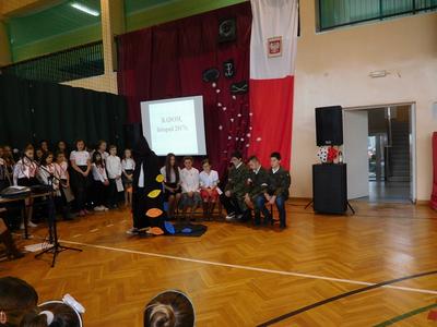 10 listopada br. w naszej szkole odbyła się uroczysta akademia z okazji 99. rocznicy odzyskania przez Polskę niepodległości. Na scenie przy dźwiękach bijącego zegara pojawiła się niezwykła postać – Duch Dziejów. To za jego sprawą przenieśliśmy się w czasie. Duch Dziejów przed każdą prezentowaną sceną odsłania jedną sylabę hasła przewodniego, którym było oczywiście słowo: NIEPODLEGŁOŚĆ.