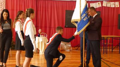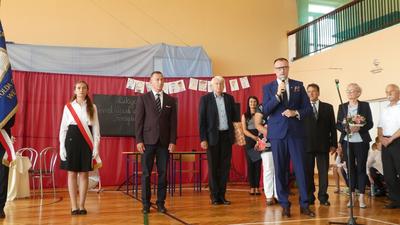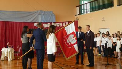 22 czerwca podczas uroczystej mszy św., celebrowanej przez Jego Ekscelencję Biskupa Henryka Tomasika dokonano poświęcenia sztandaru naszej szkoły. Po mszy cała społeczność szkolna i wszyscy zaproszeni goście zebrali się w sali gimnastycznej, gdzie rodzice naszych uczniów przekazali sztandar naszym podopiecznym. Podczas części oficjalnej uczniowie, którzy uzyskali najlepsze wyniki w nauce otrzymali od p. Dyrektora świadectwa z wyróżnieniem.