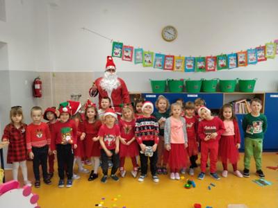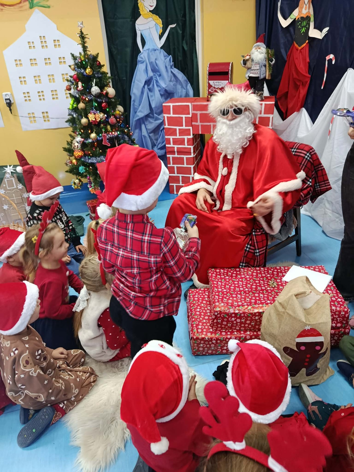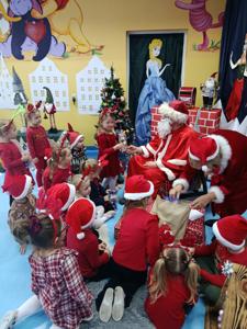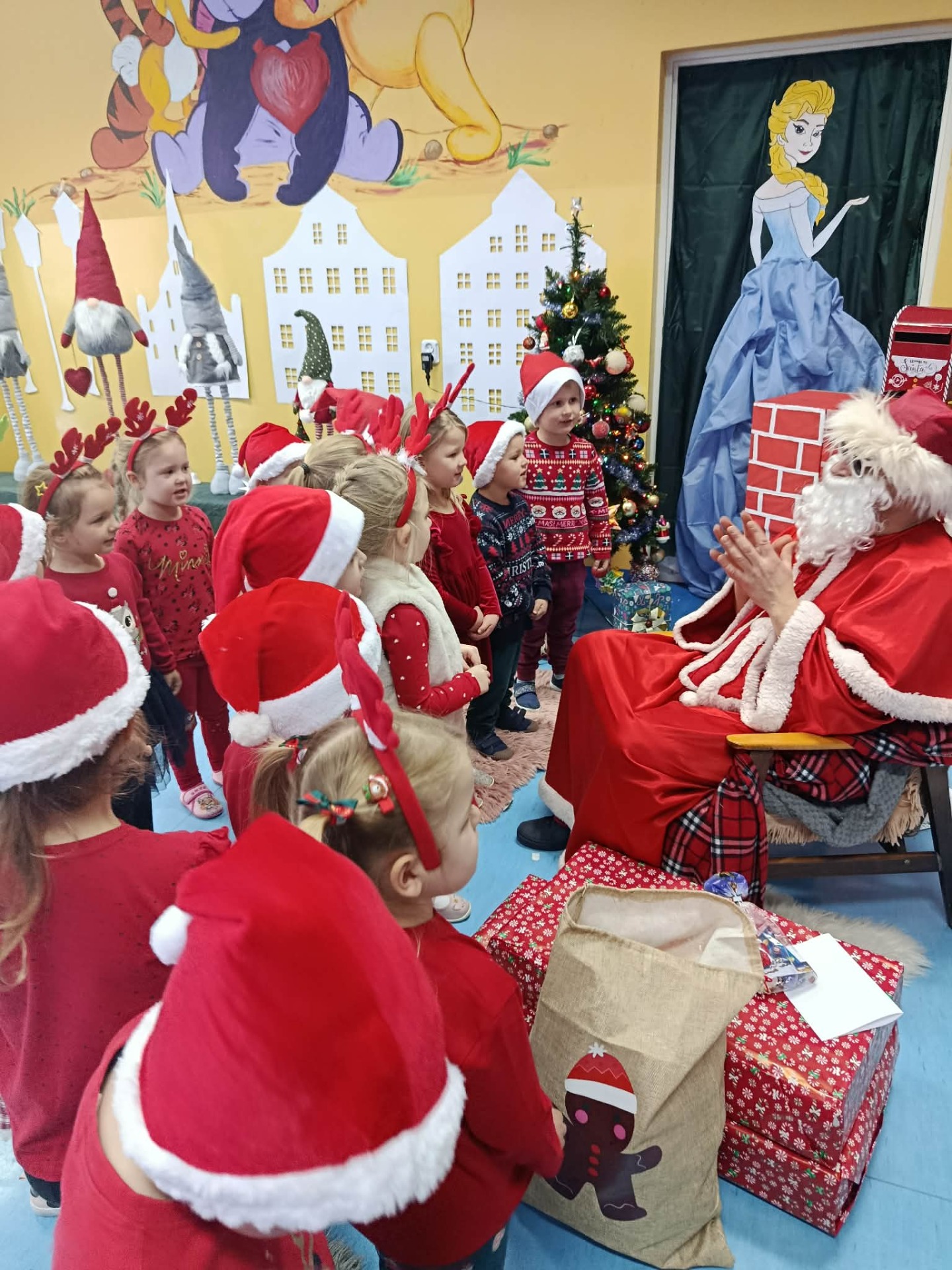 W piątek 5 grudnia nasze grupy przedszkolne wybrały się z wizytą do Mikołaja. Dzieci w świątecznych strojach z ogromnym przejęciem i radością śpiewały przygotowane piosenki oraz recytowały wierszyki, aby umilić Mikołajowi czas. W zamian otrzymały piękne prezenty, które wywołały wiele uśmiechów i emocji.