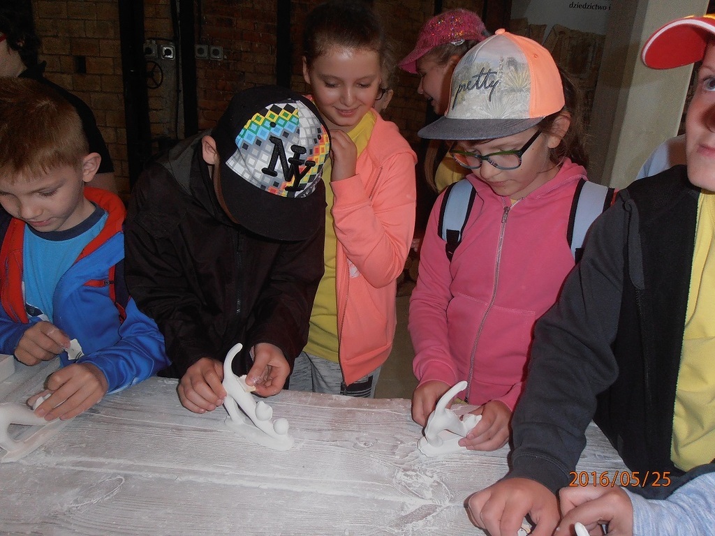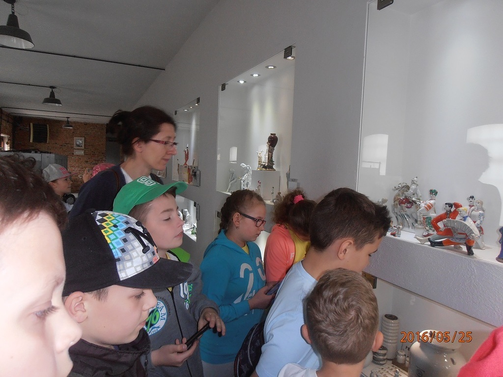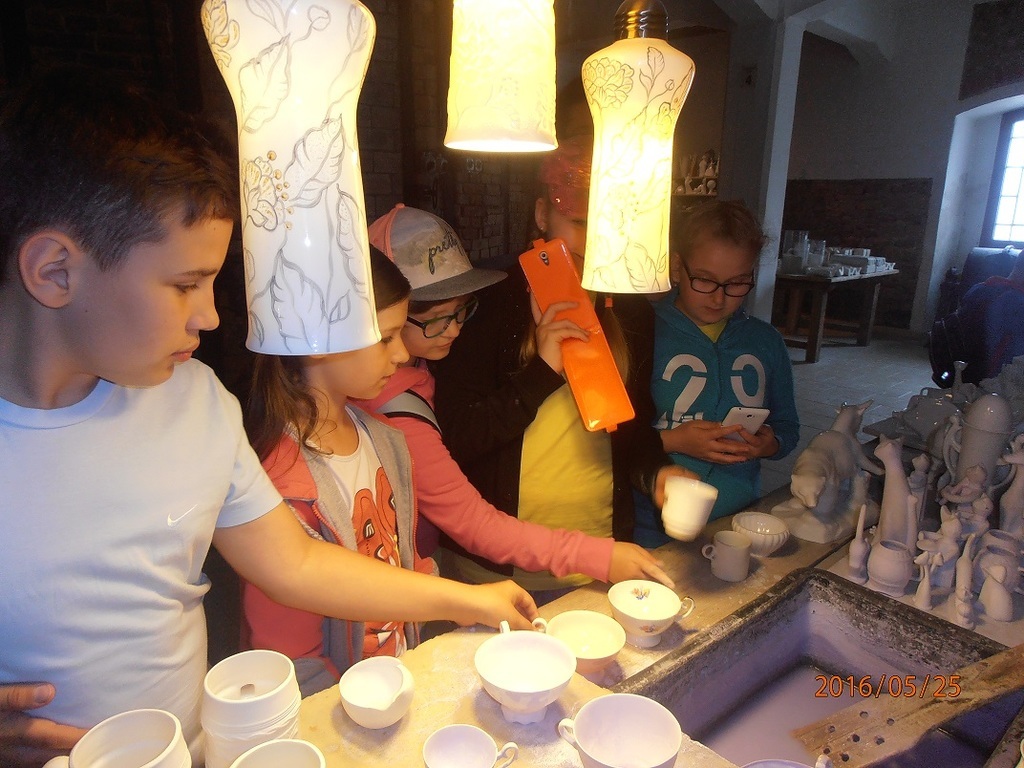 Po obejrzeniu olbrzymiej ekspozycji porcelanowych arcydzieł przyszła pora na warsztaty, podczas których czwartoklasiści lepili ze specjalnie przygotowanej masy porcelanowe róże. Należy je wysuszyć i … „upiec w piekarniku”. W ramach zakupionych biletów otrzymaliśmy również kolorowe kubeczki – oczywiście z porcelany.