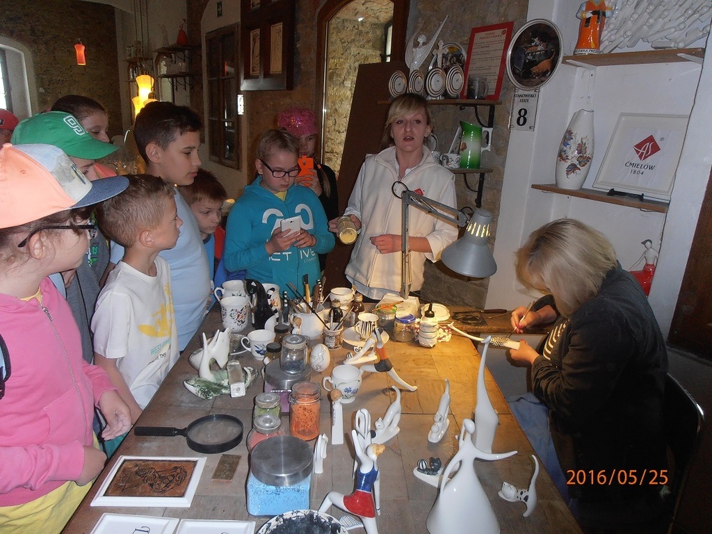 Uczniowie klasy IV b wraz z wychowawczynią i panią pedagog pojechali do Fabryki Porcelany w Ćmielowie. Tam mieli okazję poznać tradycyjne metody wytwarzania porcelanowych naczyń. Wspaniałe, ręcznie malowane produkty zachwyciły wszystkich.
