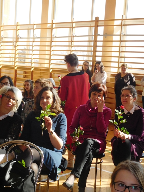 Całość prowadziła Karolina Płowiec i Robert Siurnik przedstawiając publiczności kilka ciekawych aforyzmów dotyczących pań. Zgromadzeni wysłuchali pięknych życzeń dla małych kobietek i dużych kobiet, wyrecytowanych przez Roberta na tle piosenki „Skaldów” - „Życzenie” w wykonaniu Zbigniewa Wodeckiego. W trakcie słuchania piosenki Jakub Kucharczyk i Jarosław Kot przy pomocy kolegów - aktorów wręczali wszystkim dziewczynom i paniom symboliczne róże.