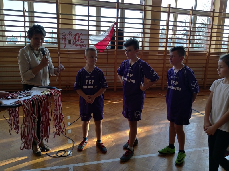 7 listopada 2018 r. w naszej szkole odbył się Halowy Turniej Piłki Nożnej z okazji 100. Rocznicy Odzyskania Niepodległości pod hasłem „Walczymy, zwyciężamy bez agresji”. Uroczystego otwarcia dokonała dyrektor szkoły Pani Dorota Dobosz, życząc udanej rywalizacji i gry w duchu „fair play”. Z racji szczególnego święta w rozgrywkach wzięły udział drużyny wszystkich szkółz Gminy Jedlińsk.