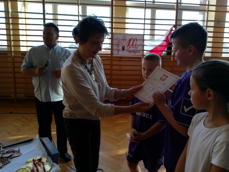 Dla wszystkich zawodników przygotowano pamiątkowe medale. Szkoły otrzymały w nagrodę piłki, a za miejsca I-III puchary. Na uczestników imprezy czekał słodki poczęstunek i napoje.