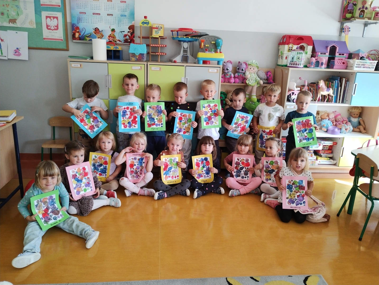 16 września przedszkolaki obchodziły Dzień Kropki. Jedna kropka, która ma wielkie znaczenie… Jest to święto, które ma na celu pobudzenie wyobraźni, kreatywności, pokonywania ograniczeń oraz umacniania wiary we własne siły. Dzieci zapoznały się z bajką „The Dot – Kropka” autorstwa Petera Reynoldsa. Bajka ta opowiada o małej dziewczynce o imieniu Vashti, która nie wierzyła we własne siły, ale dzięki odwadze i samozaparciu odnalazła swój własny talent. Nauczycielki omówiły z dziećmi bajkę oraz podjęły próbę udzielenia odpowiedzi na pytania: Jakie talenty może mieć przedszkolak? Co robić żeby uwierzyć we własne siły? Jak odnaleźć i pielęgnować swój talent?