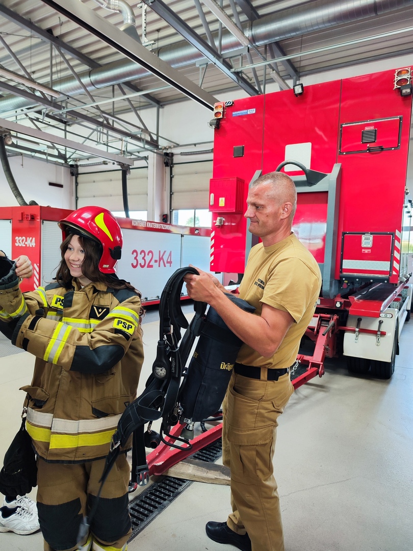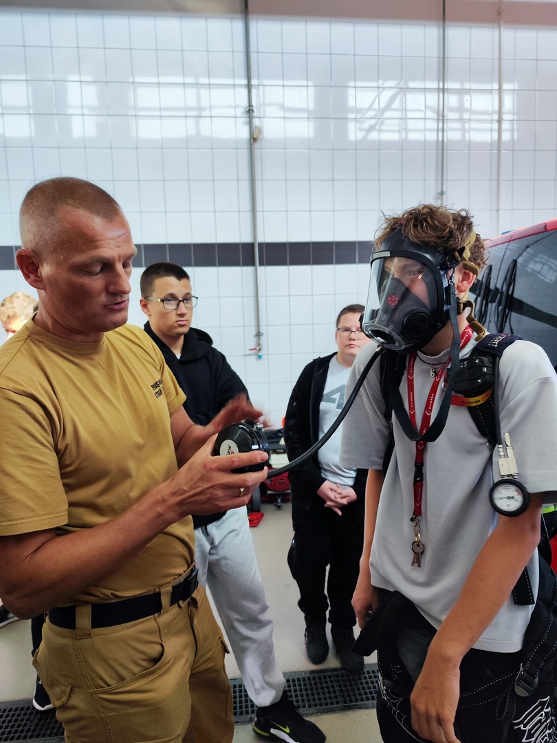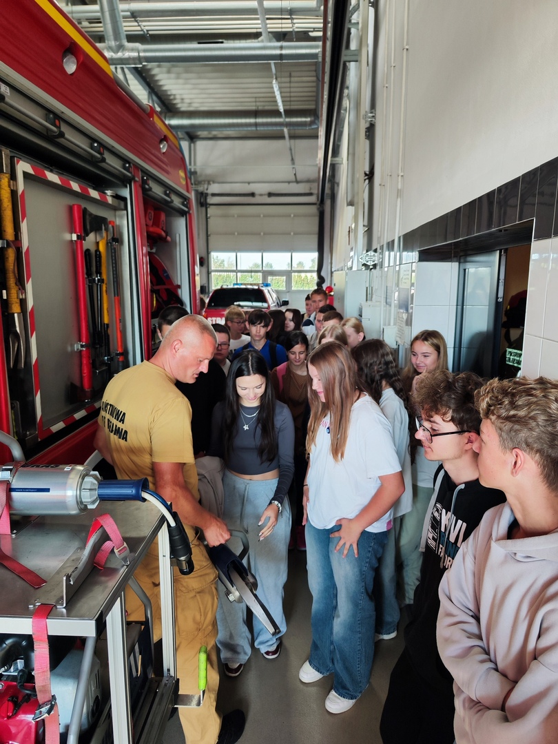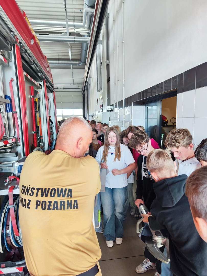 Dnia 24 września 2024 roku uczniowie klas 8a i 8c odwiedzili PSP JRG nr 2 w Radomiu w ramach doradztwa zawodowego. Podczas spotkania zaprezentowane zostały informacje dotyczące możliwości obrania konkretnej ścieżki edukacyjnej, głównie pod kątem zawodu strażaka. Nasi uczniowie dowiedzieli się np.:, jak należy przyjąć zgłoszenie pożaru, ile czasu mają strażacy na przygotowanie się i jak przebiega wyjazd na miejsce zgłoszenia. Ponadto, ósmoklasiści mogli założyć mundur strażacki, maskę tlenową oraz zobaczyć specjalistyczny sprzęt wykorzystywany podczas akcji. Było to bardzo ciekawe i niezapomniane doświadczenie.