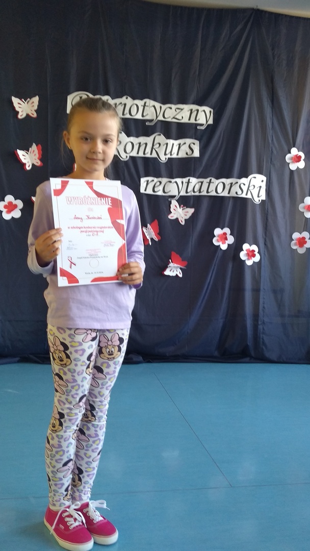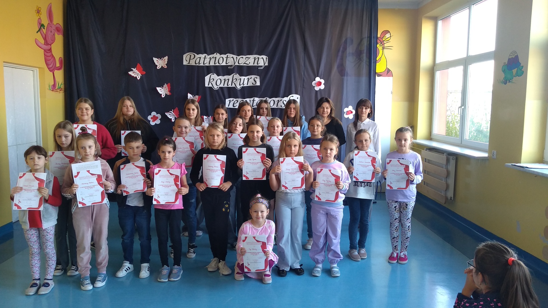 "Co to jest Polska?" Czesława Janczarskiego, „Oblicze ojczyzny” Tadeusza Różewicza czy „Polska” Antoniego Słonimskiego to jedne z wielu wierszy zaprezentowanych przez uczniów klas 0-8 naszej szkoły na Szkolnym Konkursie Recytatorskim – Poezji Patriotycznej w dniu 18 października br. Komisja miała duży problem aby wybrać tych najlepszych w swoich kategoriach wiekowych, ponieważ wszyscy byli świetnie przygotowani. We wtorek nastąpiło rozstrzygnięcie konkursu, w którym wyróżnieni uczestnicy w nagrodę pojadą na Gminny Konkurs Poezji Patriotycznej do GCKiKF