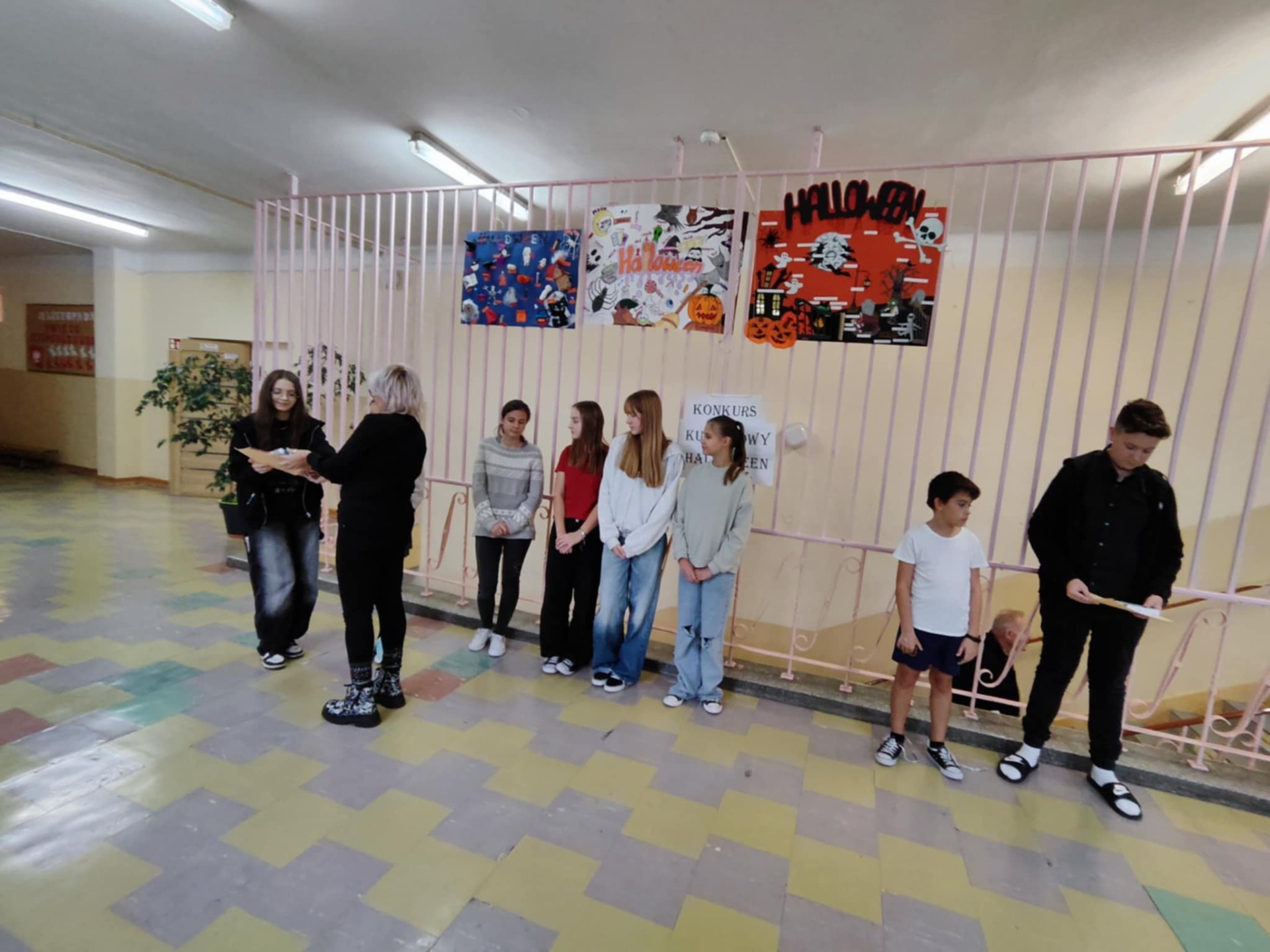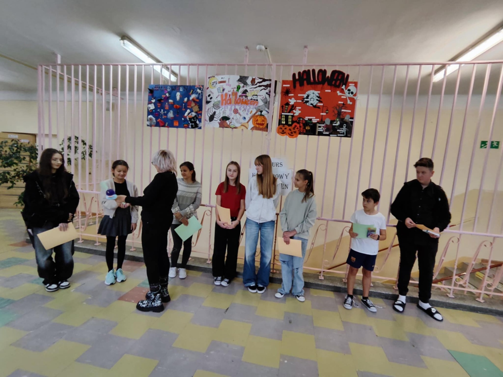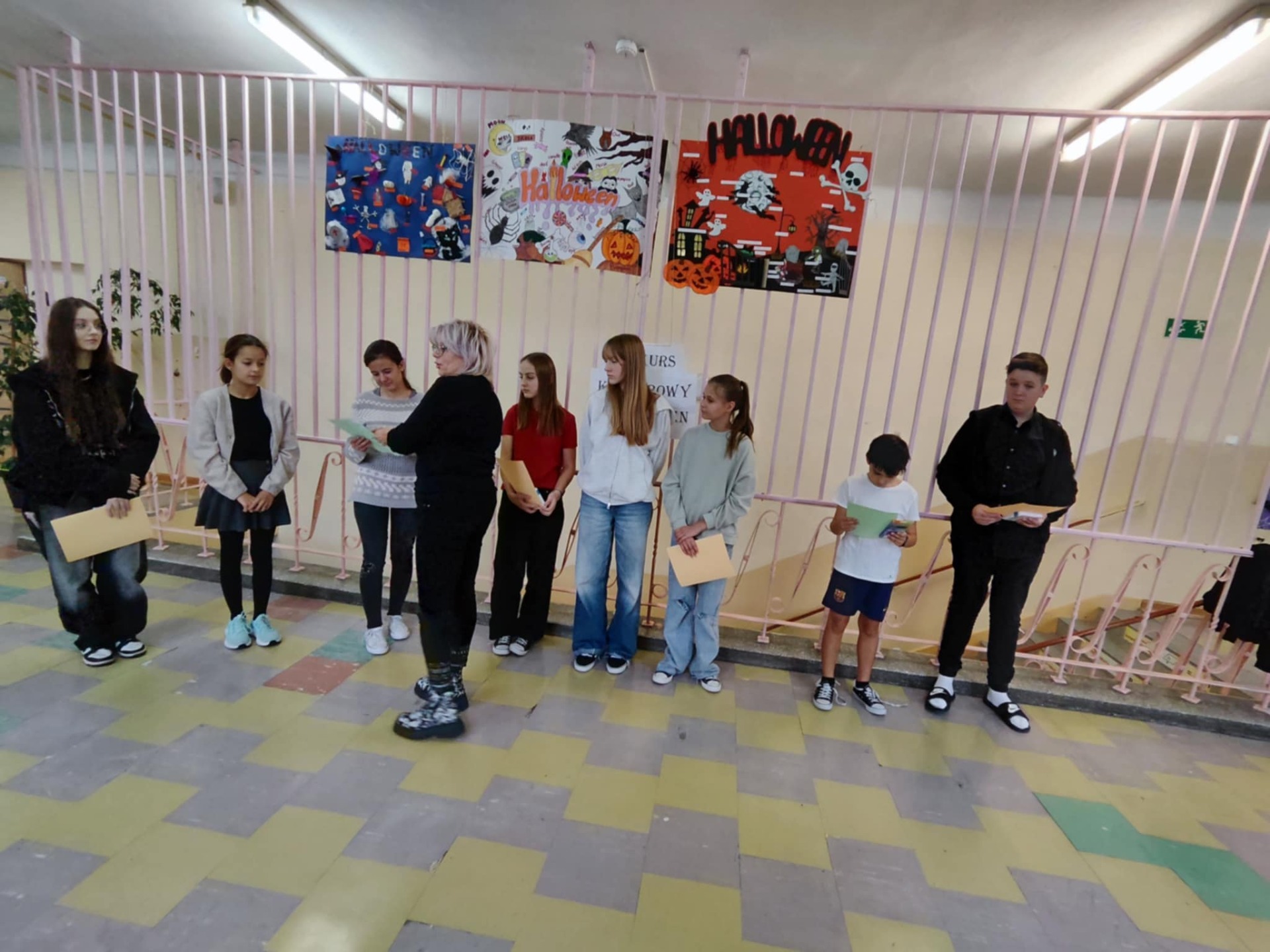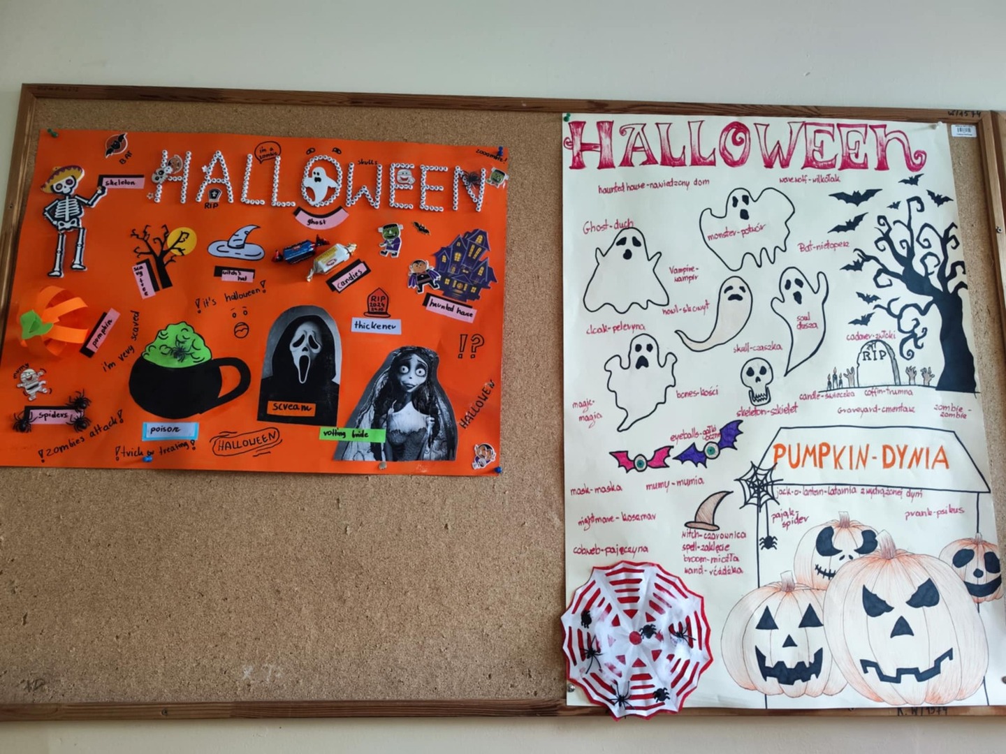 W październiku w naszej szkole został zorganizowany konkurs językowy Halloween. Zadaniem konkursowym było wykonanie plakatów, na których uwzględnione było słownictwo związane z tymże zwyczajem. Zgodnie z podstawą programową języka obcego nowożytnego celem konkursu było m.in.: rozwój umiejętności językowych, rozwój myślenia twórczego, zapoznanie z kulturą własną i obcą, poszerzanie wiedzy o krajach, społeczeństwach i kulturach społeczności, które posługują się danym językiem obcym nowożytnym, oraz o kraju ojczystym, z uwzględnieniem kontekstu lokalnego, europejskiego i globalnego, przybliżenie słownictwa w języku angielskim związanego z Halloween, rozwój kompetencji technicznych i plastycznych, kształtowanie jakości pracy indywidualnej.