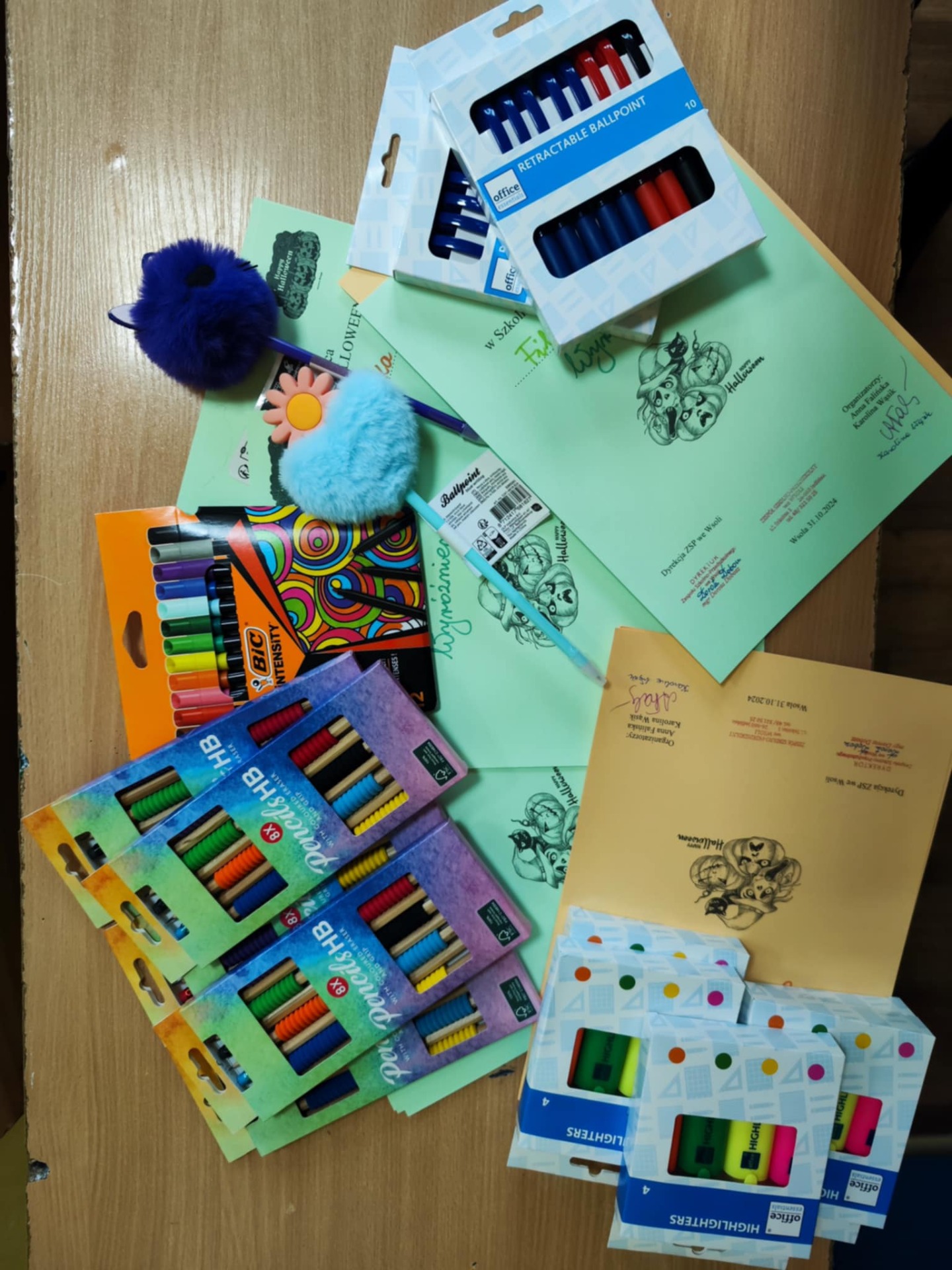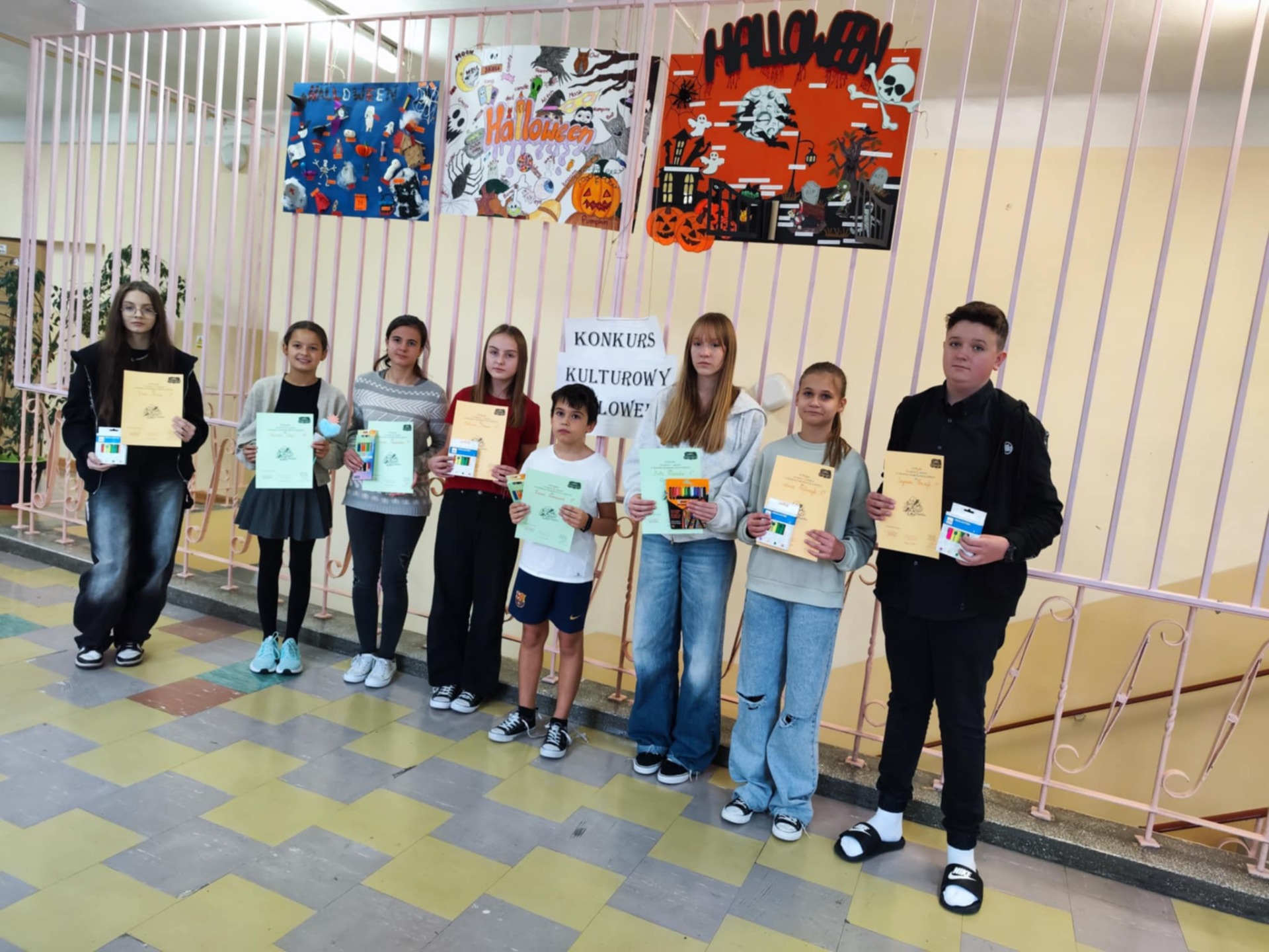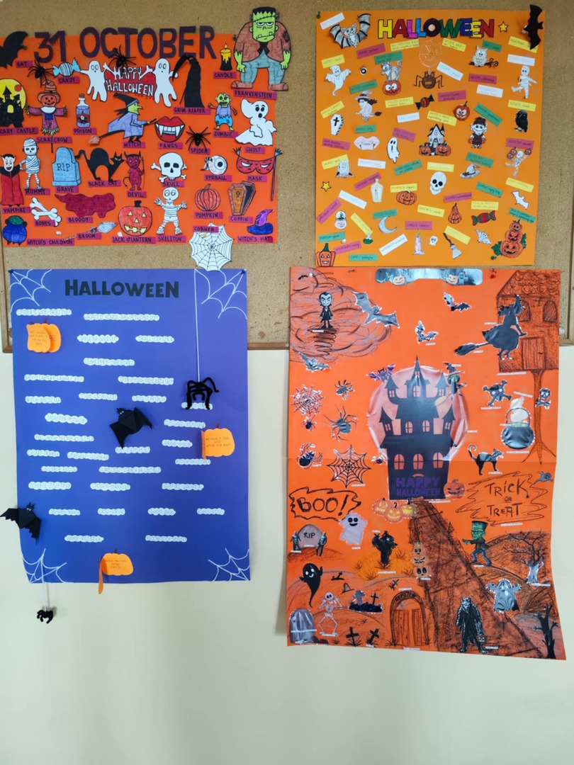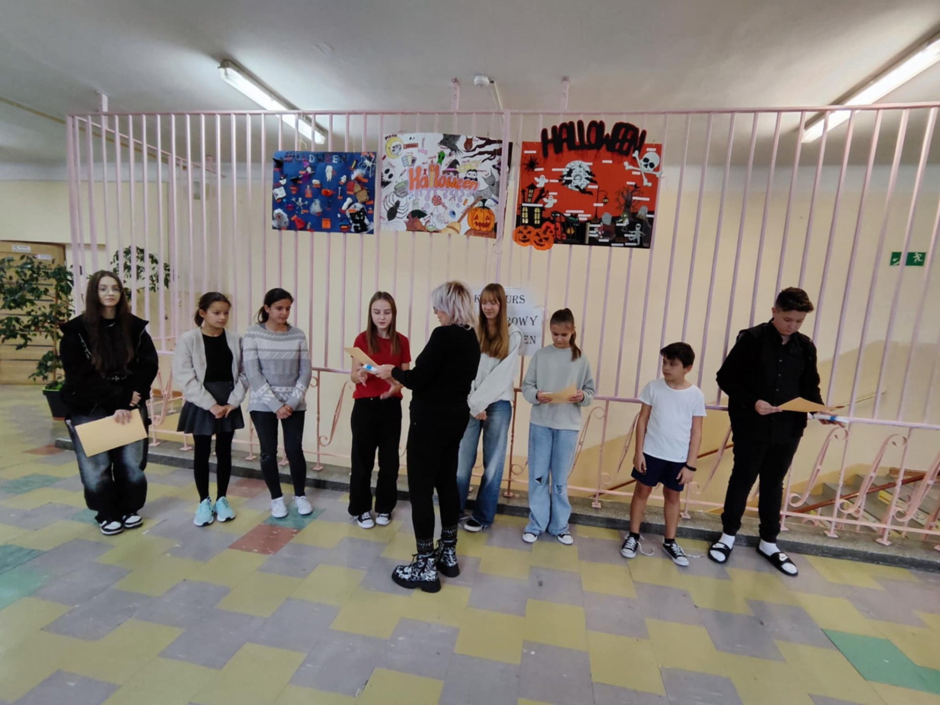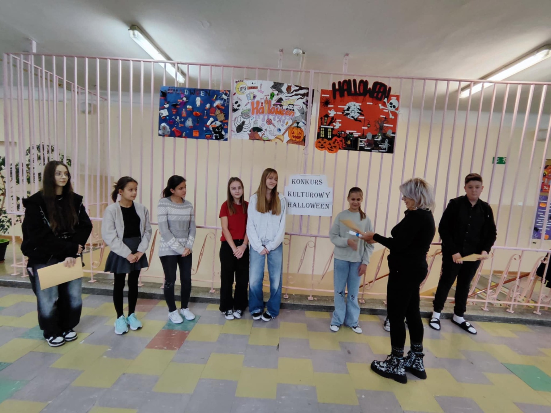 W październiku w naszej szkole został zorganizowany konkurs językowy Halloween. Zadaniem konkursowym było wykonanie plakatów, na których uwzględnione było słownictwo związane z tymże zwyczajem. Zgodnie z podstawą programową języka obcego nowożytnego celem konkursu było m.in.: rozwój umiejętności językowych, rozwój myślenia twórczego, zapoznanie z kulturą własną i obcą, poszerzanie wiedzy o krajach, społeczeństwach i kulturach społeczności, które posługują się danym językiem obcym nowożytnym, oraz o kraju ojczystym, z uwzględnieniem kontekstu lokalnego, europejskiego i globalnego, przybliżenie słownictwa w języku angielskim związanego z Halloween, rozwój kompetencji technicznych i plastycznych, kształtowanie jakości pracy indywidualnej.