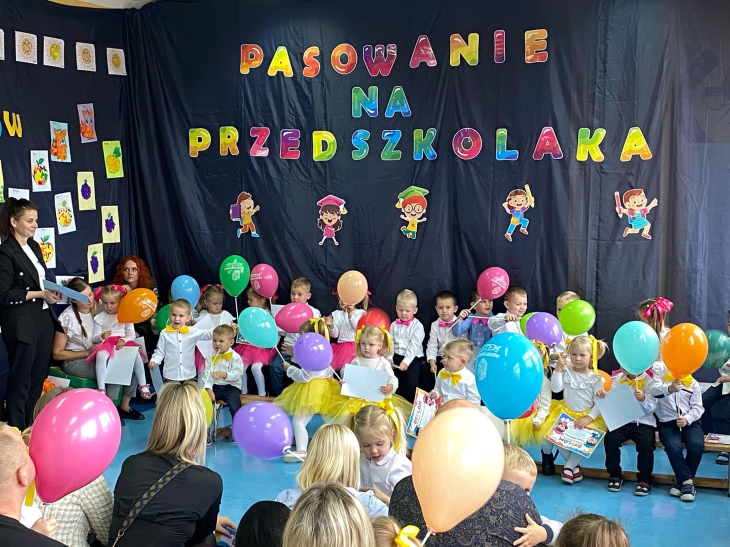 25 października w naszym przedszkolu odbyła się ważna uroczystość dla Dzieci, które po raz pierwszy w tym roku szkolnym zawitały do naszego przedszkola. Uroczystość rozpoczęła się od powitania Gości i przedstawienia krótkiej części artystycznej, w której Dzieci zaprezentowały swoje umiejętności – dając tym samym dowód, jak dużo już potrafią. Po części artystycznej, Dzieci przyrzekły: co dzień rano buzie mieć zawsze roześmianą, nie płakać, nie szlochać panie i kolegów mocno kochać, zabawki szanować i dookoła wszystko porządkować, zostać zuchami i prawdziwymi przedszkolakami. Po złożonej obietnicy, Pani Dyrektor dokonała uroczystego pasowania każdego dziecka na przedszkolaka. Na pamiątkę tego ważnego wydarzenia każdy Przedszkolak otrzymał dyplom pasowania oraz kolorowy balonik. Podczas trwania uroczystości wszyscy zaproszeni Goście mieli możliwość podziwiać wystawę pierwszych arcydzieł przyszłych artystów, wykonanych przez nasze wspaniałe maluszki z grupy Słoneczek oraz Misiów. Na zakończenie uroczystości Przedszkolaki wraz z Rodzicami, zaproszonymi Gośćmi oraz Wychowawcami udali się na przygotowany poczęstunek, gdzie wszyscy mogli porozmawiać i uroczyście świętować ten wyjątkowy dzień.