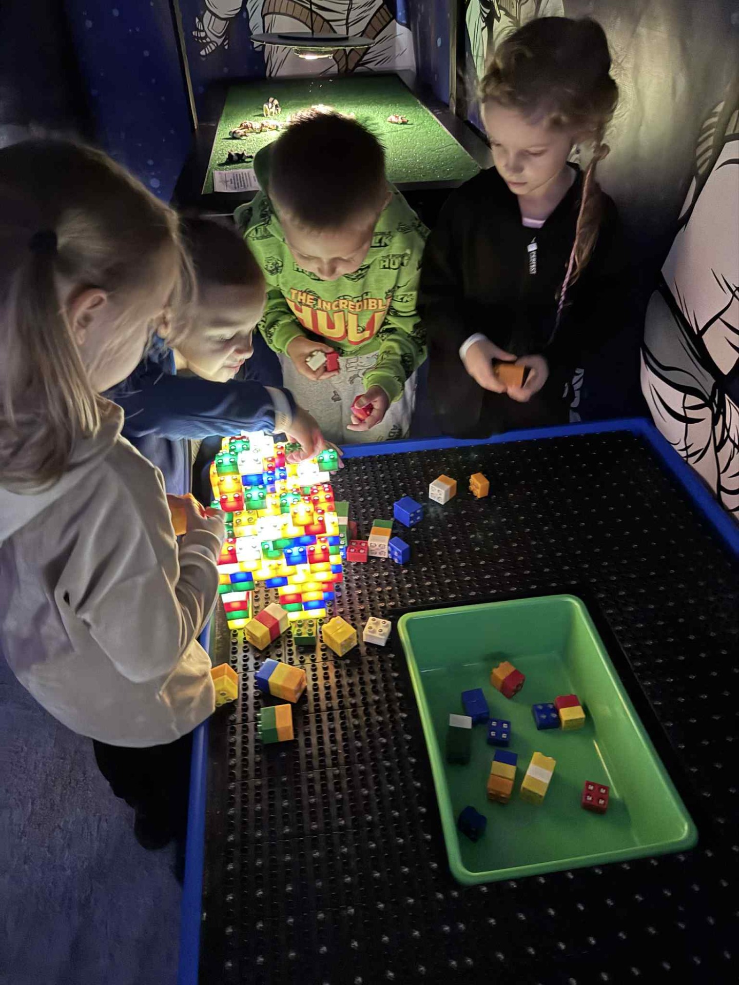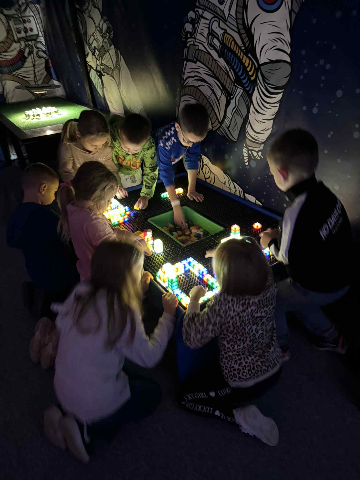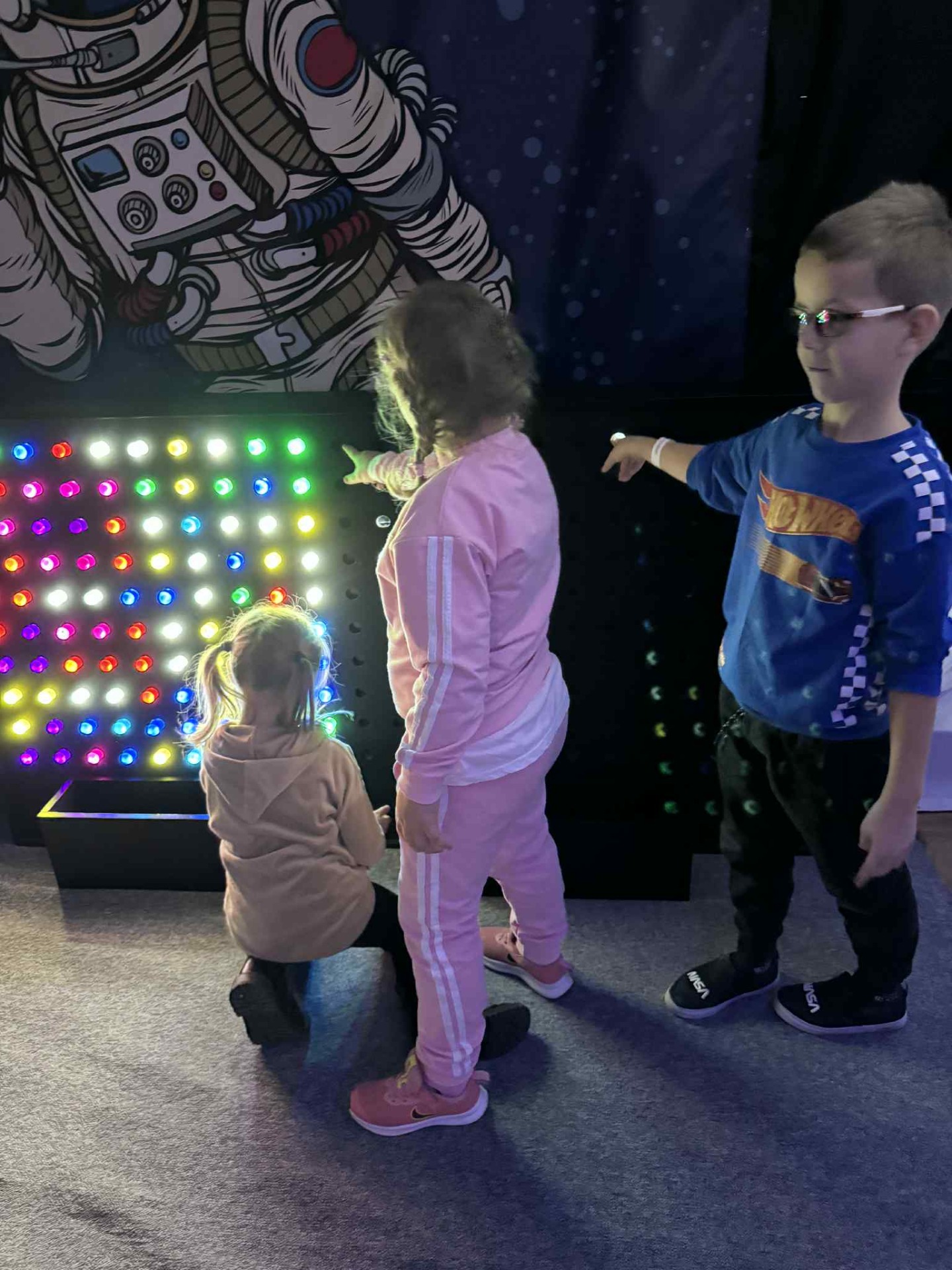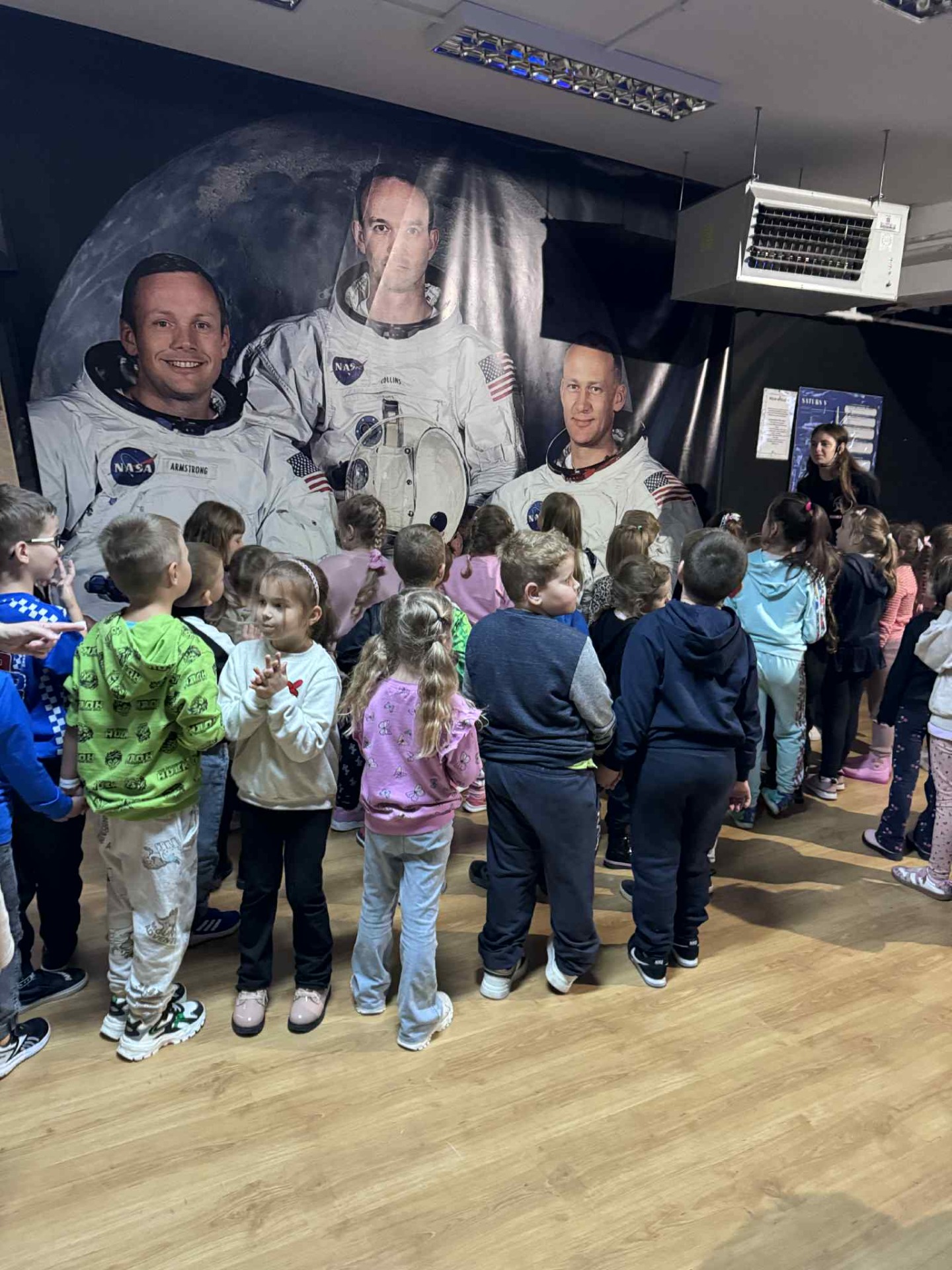 Nasze przedszkolaki po raz kolejny udowodniły, że ciekawość świata nie zna granic – nawet tych kosmicznych! 10 października dzieci z grupy Pszczółki i Liski wyruszyły na wyjątkową wycieczkę do KosmoParku w Radomiu, by odkrywać tajemnice Wszechświata. Po przyjeździe na miejsce dzieci z zachwytem przekroczyły próg kosmicznej ekspozycji. Czekały na nas niezwykłe atrakcje, między innymi: realistyczne modele planet i stacji kosmicznych, symulatory lotów w kosmos, interaktywne wystawy, które uczyły przez zabawę. Dzieci mogły dotknąć meteorytu, posłuchać, jak brzmi cisza w przestrzeni kosmicznej i dowiedzieć się, co jedzą astronauci na orbicie. Każdy krok był nowym odkryciem – a szeroko otwarte oczy i uśmiechy mówiły wszystko! Wszyscy wróciliśmy pełni wrażeń, z głowami pełnymi gwiazd i uśmiechami od ucha do ucha.