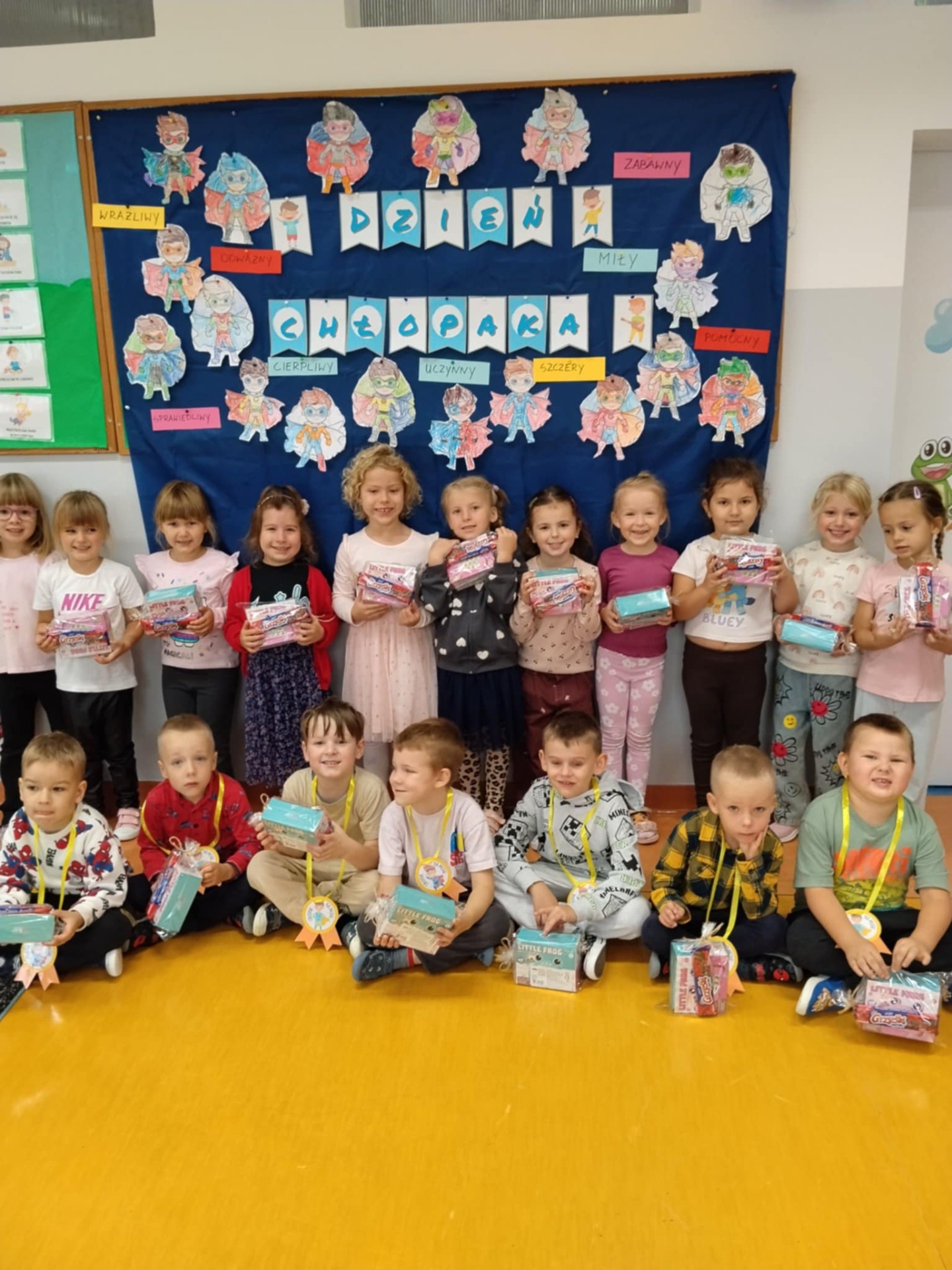 30 września w naszym przedszkolu obchodziliśmy Dzień Chłopaka. W tym wyjątkowym dniu mali chłopcy świętowali w swoich salach, otrzymując drobne upominki przygotowane przez rodziców i koleżanki z grupy. Było dużo radości, uśmiechu i wspólnej zabawy.