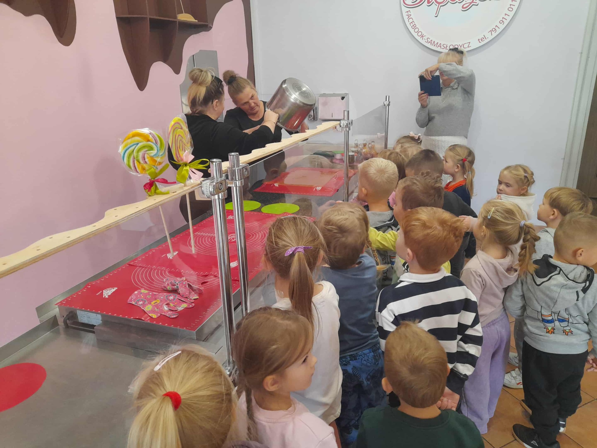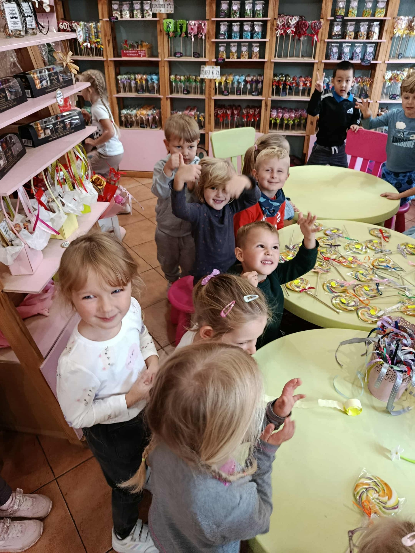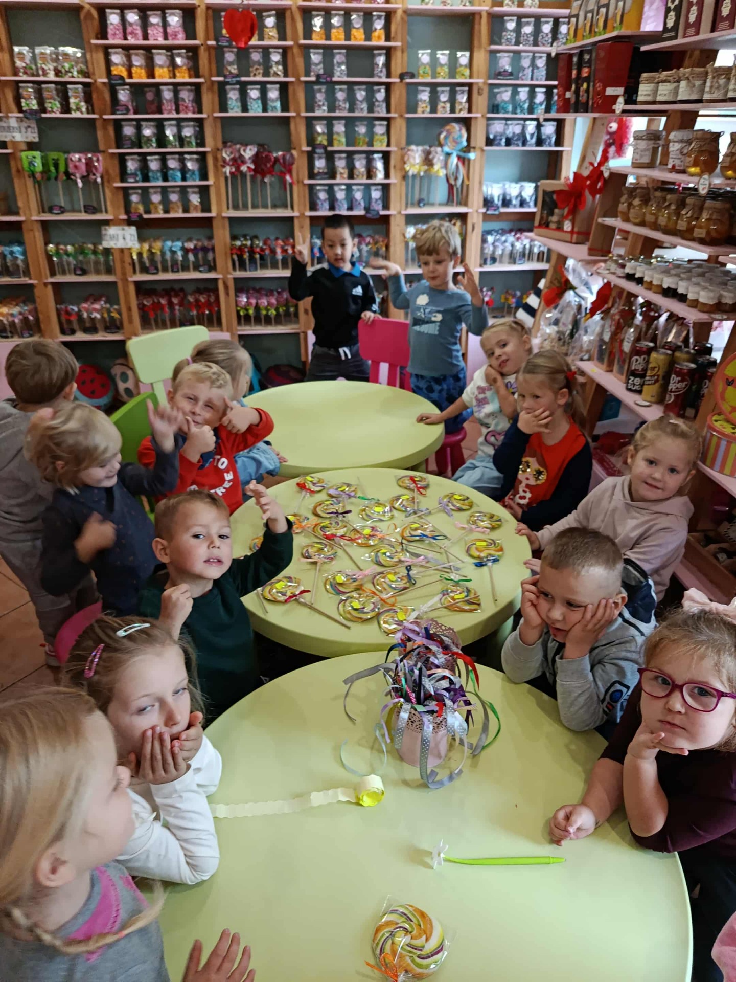 Z okazji tego święta dzieci z trzech grup wybrały się na wycieczkę do Radomia, gdzie odwiedziły Manufakturę Słodyczy. Przedszkolaki mogły tam zobaczyć, jak powstają kolorowe lizaki i cukierki, a nawet samodzielnie wykonać swoje słodkie dzieła. To był pełen wrażeń i słodkich niespodzianek dzień! 🍬😊