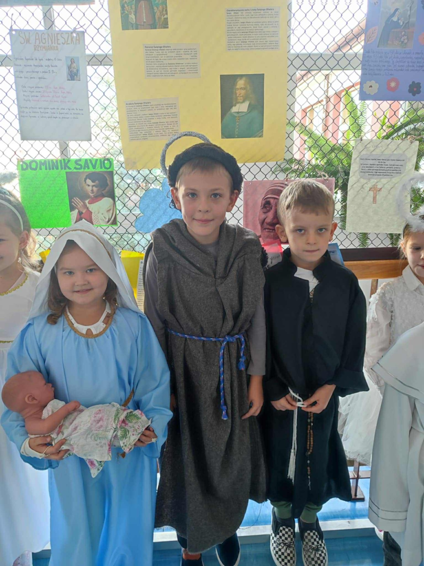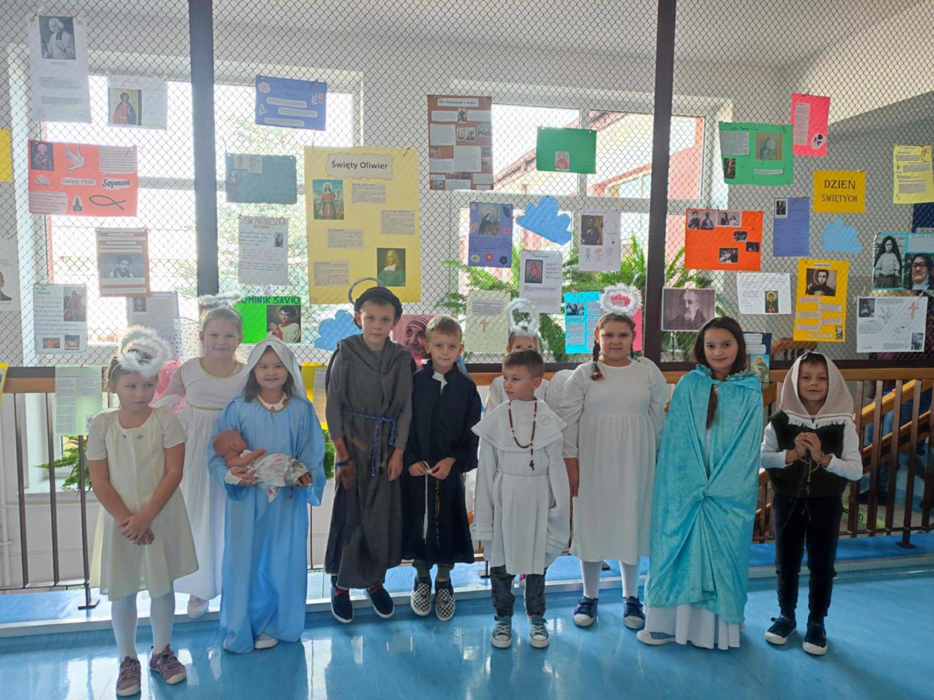 Dnia 30 października2025 r. szkolny korytarz wypełnił się radością, kolorami i ...świętymi! Dzieci i młodzież przebrali się za swoich ulubionych patronów - było dużo zadowolenia i dobrej zabawy! Na wystawie można było podziwiać prace uczniów na temat wybranych przez siebie świętych. Każdy też mógł wylosować sobie cytat świętego. To wyjątkowy dzień, w którym przypomnieliśmy sobie, że każdy z nas jest powołany do świętości i że można o tym mówić z radością i entuzjazmem!