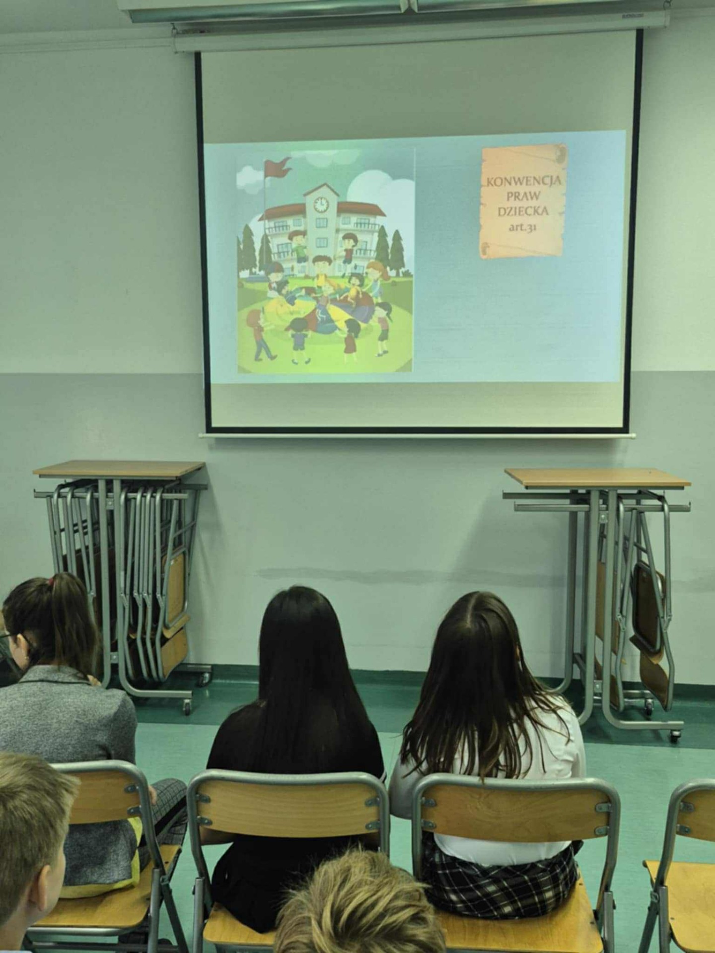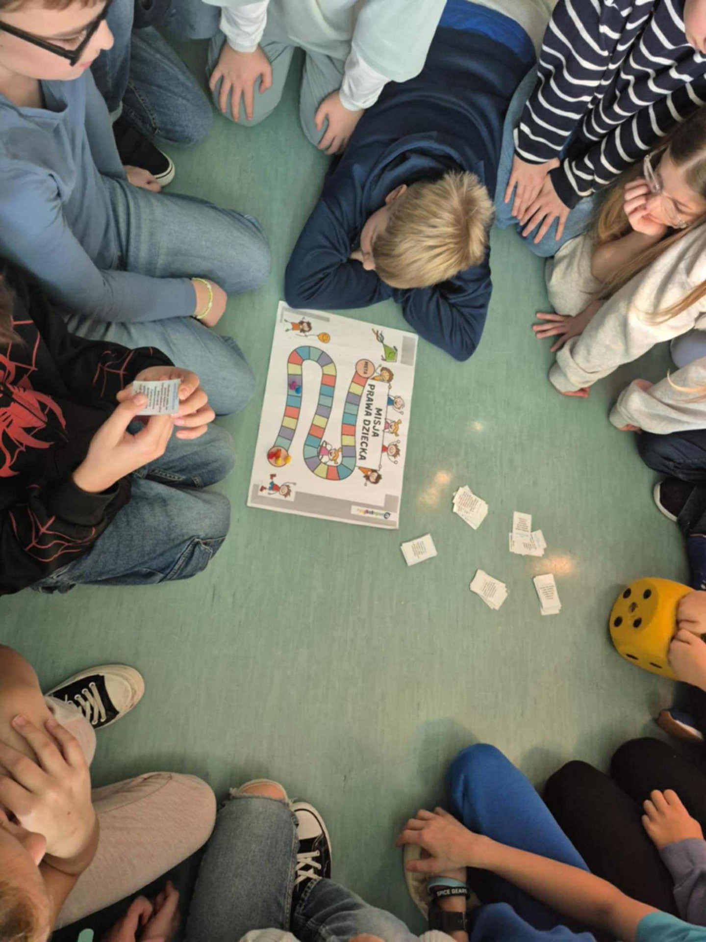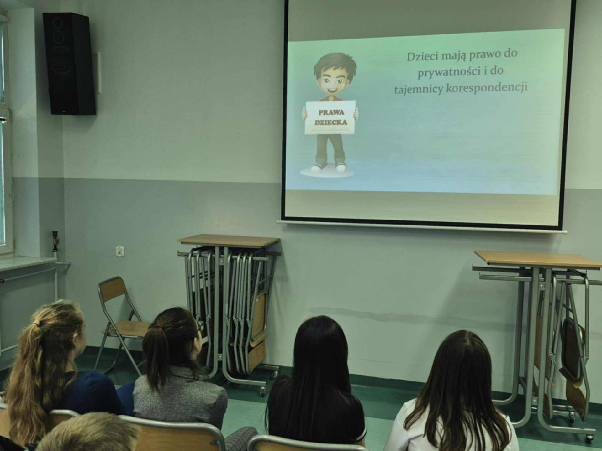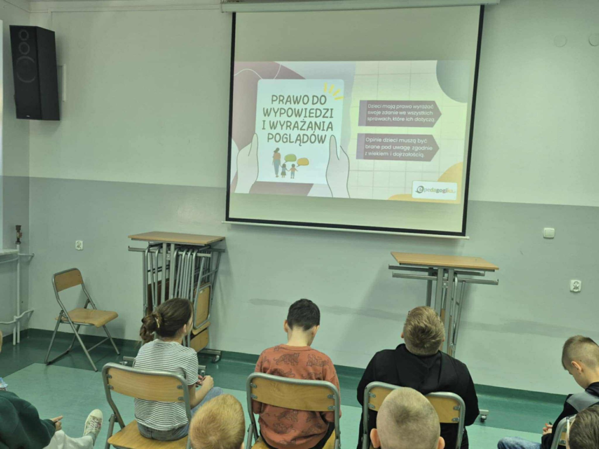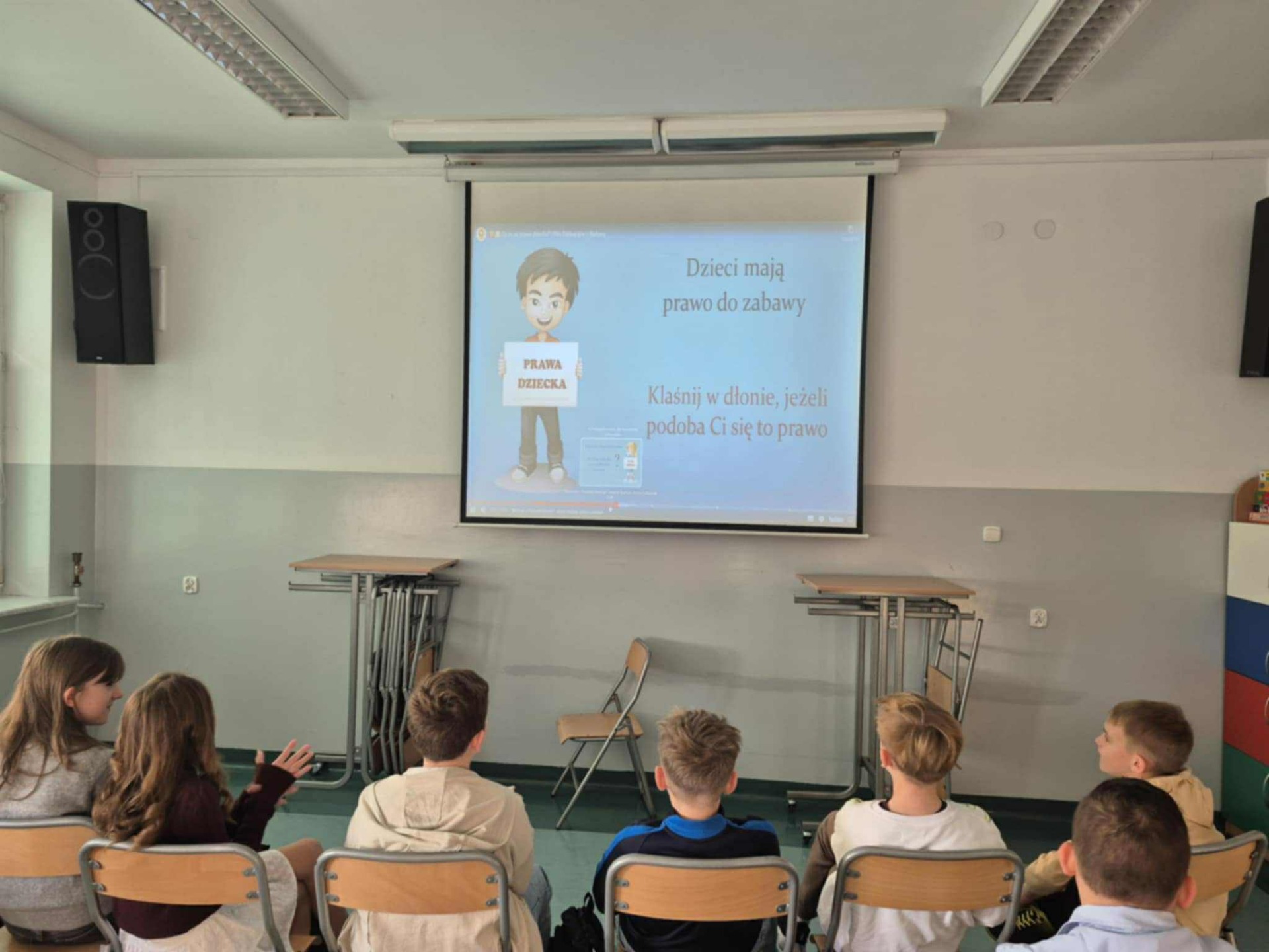 Dodatkowo uczniowie klas 4 i 5 uczestniczyli w prelekcji na temat praw dziecka, podczas której dowiedzieli się, jakie mają prawa i do kogo mogą zwrócić się o pomoc. Po części edukacyjnej dzieci zagrały w grę tematyczną, która w atrakcyjny sposób utrwaliła zdobytą wiedzę.